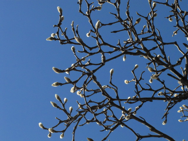 ハクモクレン 春を感じているのか蕾が膨らんできています。
