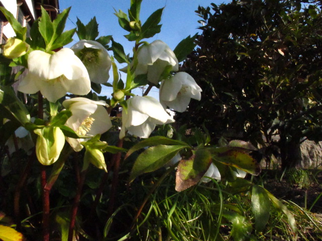 カミさんのクリスマスローズも満開 屋外で放任栽培ですが丈夫ですね。