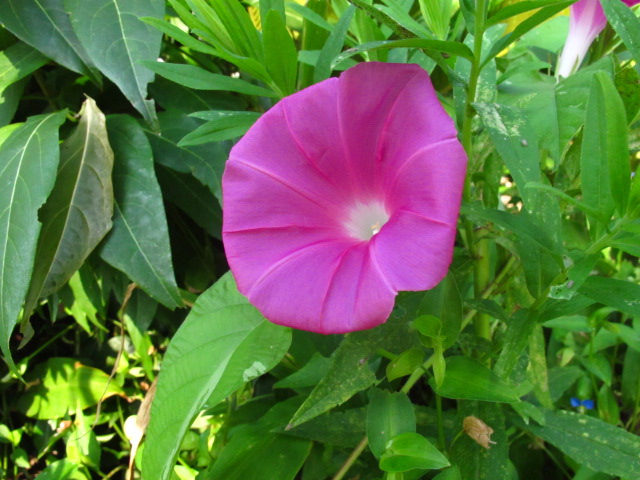 枯れかけていた朝顔がいつの間にか元気になってまた花を咲かせています。