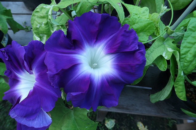 「古今の月」 こういう色を朝顔では黒鳩色というそうだ。微妙な色でいいですね。