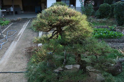 庭に200年近いといわれる2mほどの松の古木があって、先週からボツボツと剪定をはじめていた。