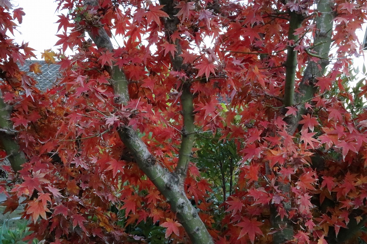 モミジも紅葉ピーク過ぎ。葉先が傷んでイマイチの紅葉。これから枯れ落ちていきます。