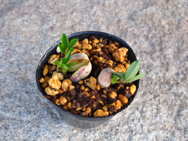 落花生の発芽 実が大きい「おおまさり」という品種で、ゆで豆用です。