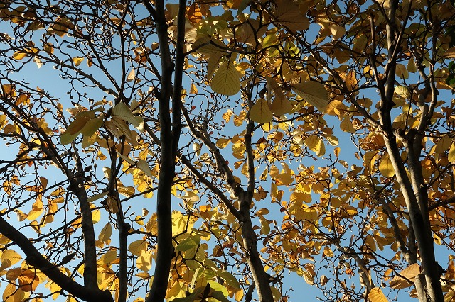 白木蓮 黄金色の落葉
