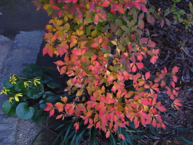 今朝、新聞を取りに出ると、ドウダンツツジが良い色になっていました。