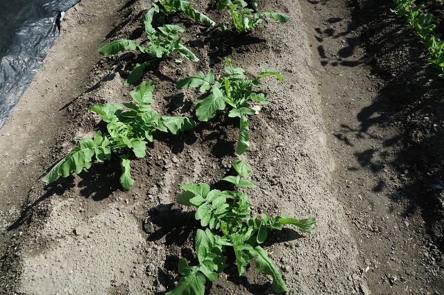 大根や葉物野菜などが大きくなってきた。10月中には冬の間に食べる野菜の播種を終えるつもり。