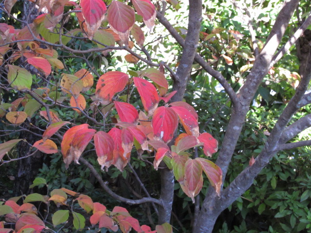 ヤマホウシが紅葉してきました。いろいろ多彩できれいな色です。