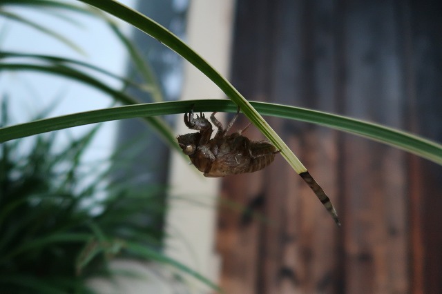 こんな細い蘭の葉につかまってかえったのもいますなあ。命がけやなあ