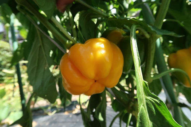 今年初めてパプリカを1本だけ作ってみた。苗が高い。 ようやく色づいて黄色くなってきた。