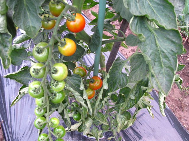 トマトはおいしくできていますがカラスも収穫に来ているのを目撃しました。
