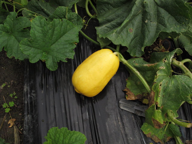 キンウリ 今年はいつもと違う品種にしましたが、色づいてきました。