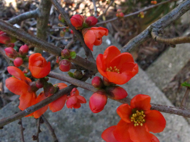 ボケの花。独特な雰囲気がありますね。絵の材料になりそう。