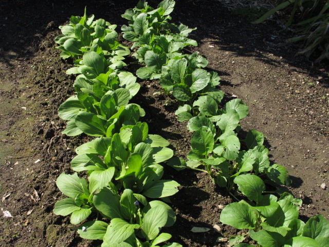 菜園のコマツナ、チンゲンサイ 肥料少な目栽培。鮮度抜群、味はいいです。