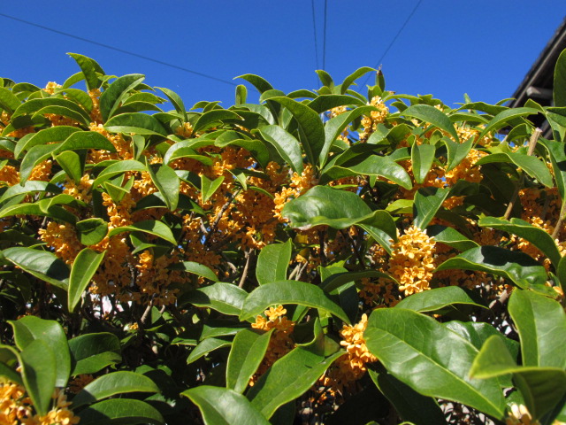 キンモクセイが満開。今年は少し遅めかな。キンモクセイ茶を作って飲みました。