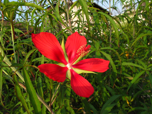 紅蜀葵 大きな花を次々咲かせます。