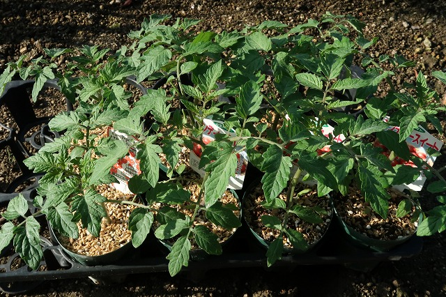 トマトの苗をHCで買ってきて、第1花房が開花するくらいまでおとなしく育てるため、大きめのポットで肥料少なく育苗してから畑に定植します。 おいしいトマトができますように!!!
