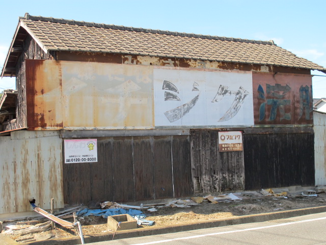 JR線から100mくらいの道路沿いに、文字がはっきり読めないようなボロボロの大きな看板があった。まあ50年くらいは経っているんじゃないかなあ。