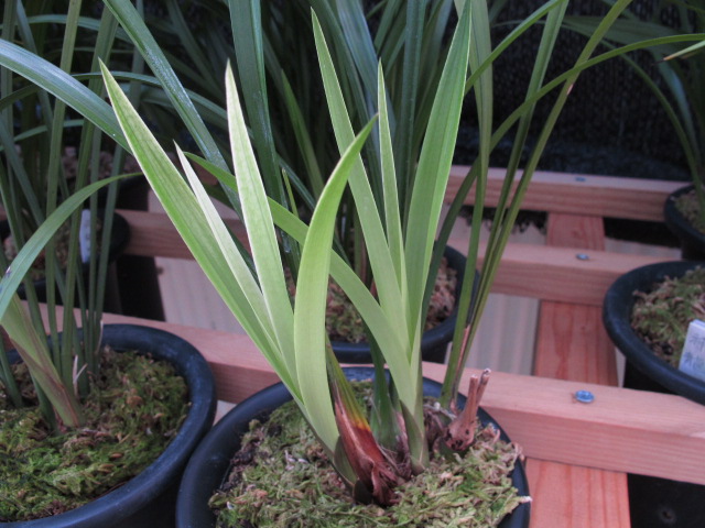 この株は土佐カンランの三世冠で今年株分けした苗です。きれいな新芽が2芽伸びています。