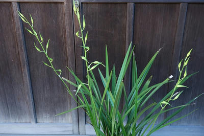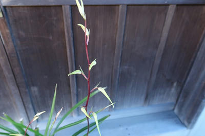 「豊雪」 まだ蕾だ。花茎は良く伸びて80㎝くらいはある。まだ緑がだいぶ残っている