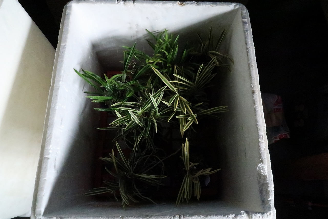 富貴蘭やセッコクも発泡箱に入れて隅に置いてある。久々に霧吹きをした。