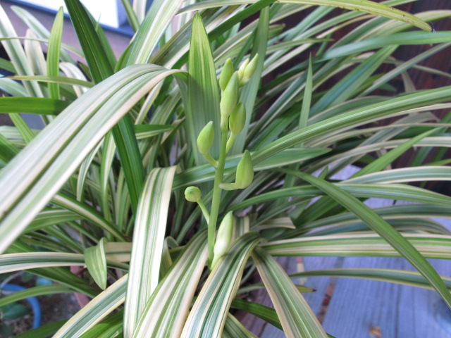 玉魷蘭(魚魷蘭)の白簾です。今年も数本の花茎が上がってきています。