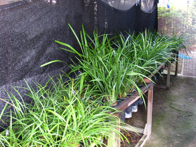 奥側は寒蘭 お気に入りの銘品とオークションで買った期待の無銘品など。